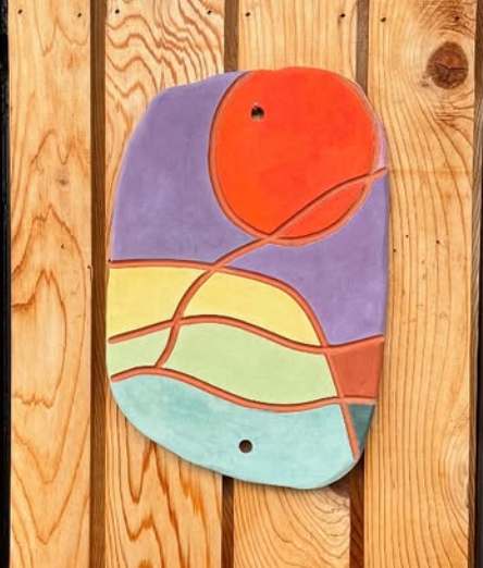 House Badges are hand formed and carved using Terracotta clay, then painted with underglazes before being fired. Each badge is one-of-a-kind and stamped and signed on the back with Badge number.