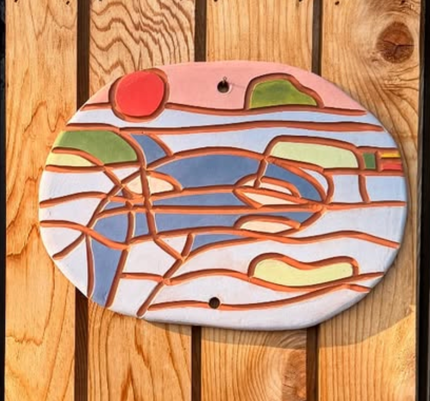 House Badges are hand formed and carved using Terracotta clay, then painted with underglazes before being fired. Each badge is one-of-a-kind and stamped and signed on the back with badge number.