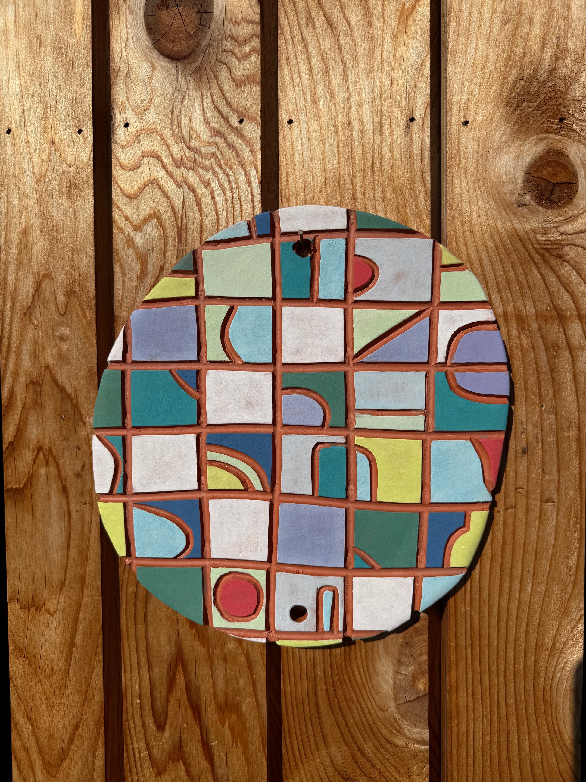 House Badges are hand formed and carved using Terracotta clay, then painted with underglazes before being fired. Each badge is one-of-a-kind and stamped and signed on the back with badge number.