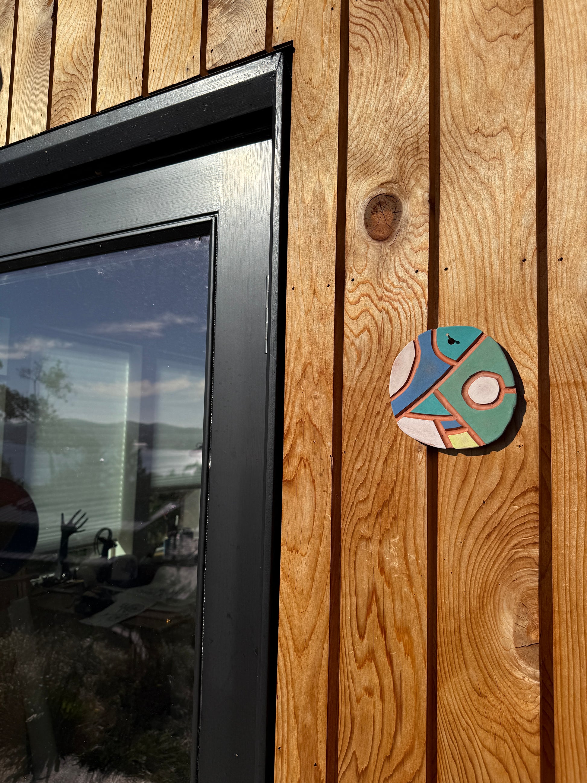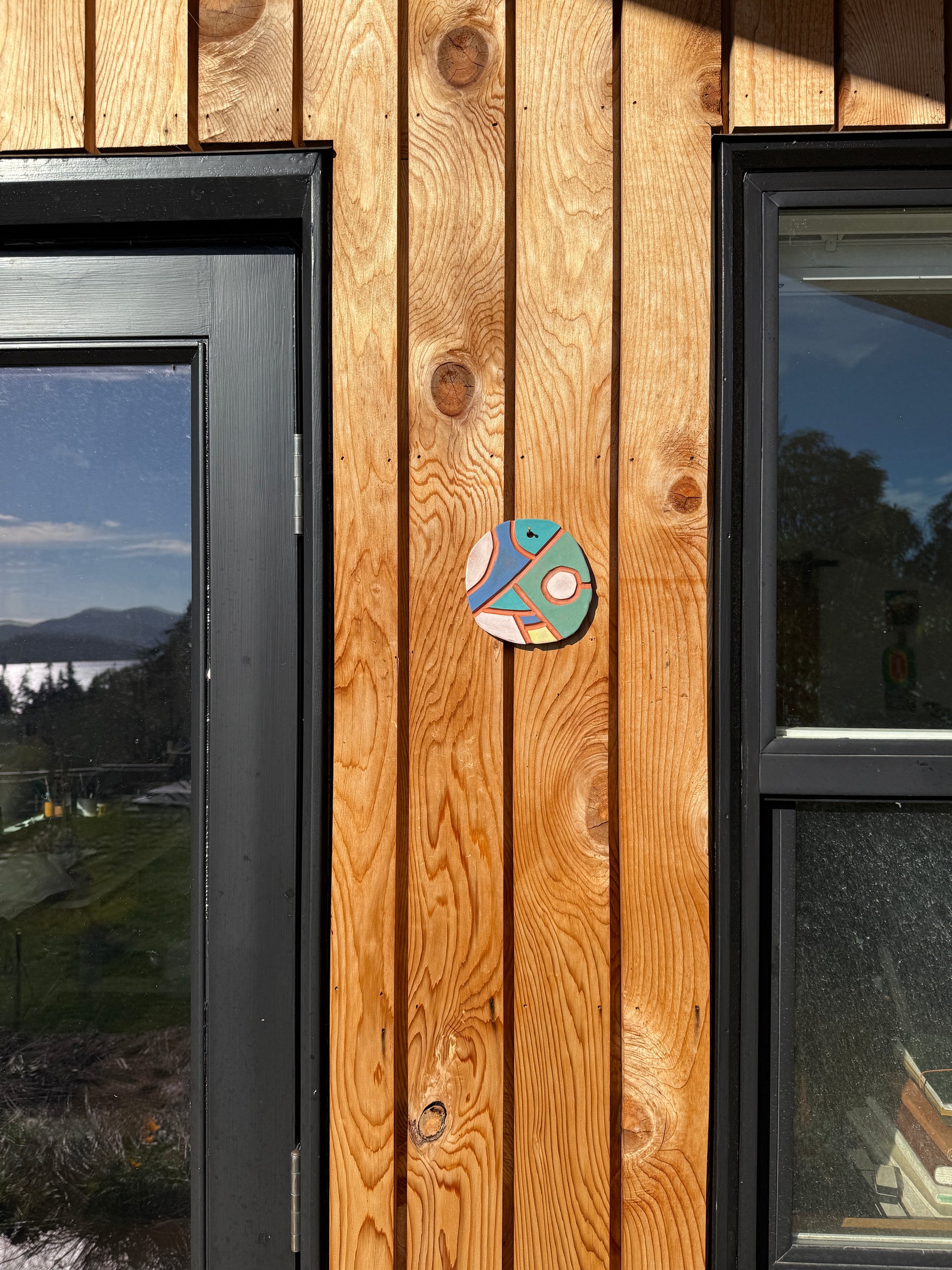 House Badges are hand formed and carved using Terracotta clay, then painted with underglazes before being fired. Each badge is one-of-a-kind and stamped and signed on the back with badge number.