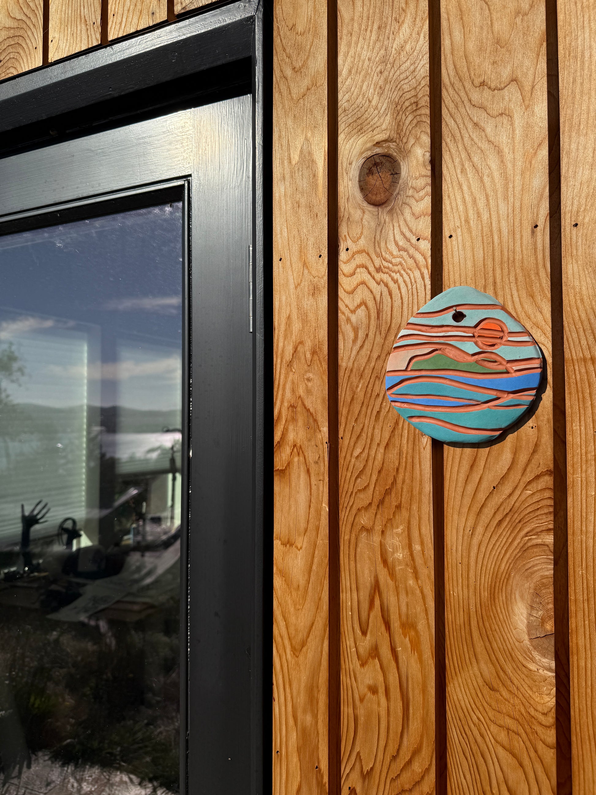 House Badges are hand formed and carved using Terracotta clay, then painted with underglazes before being fired. Each badge is one-of-a-kind and stamped and signed on the back with badge number.