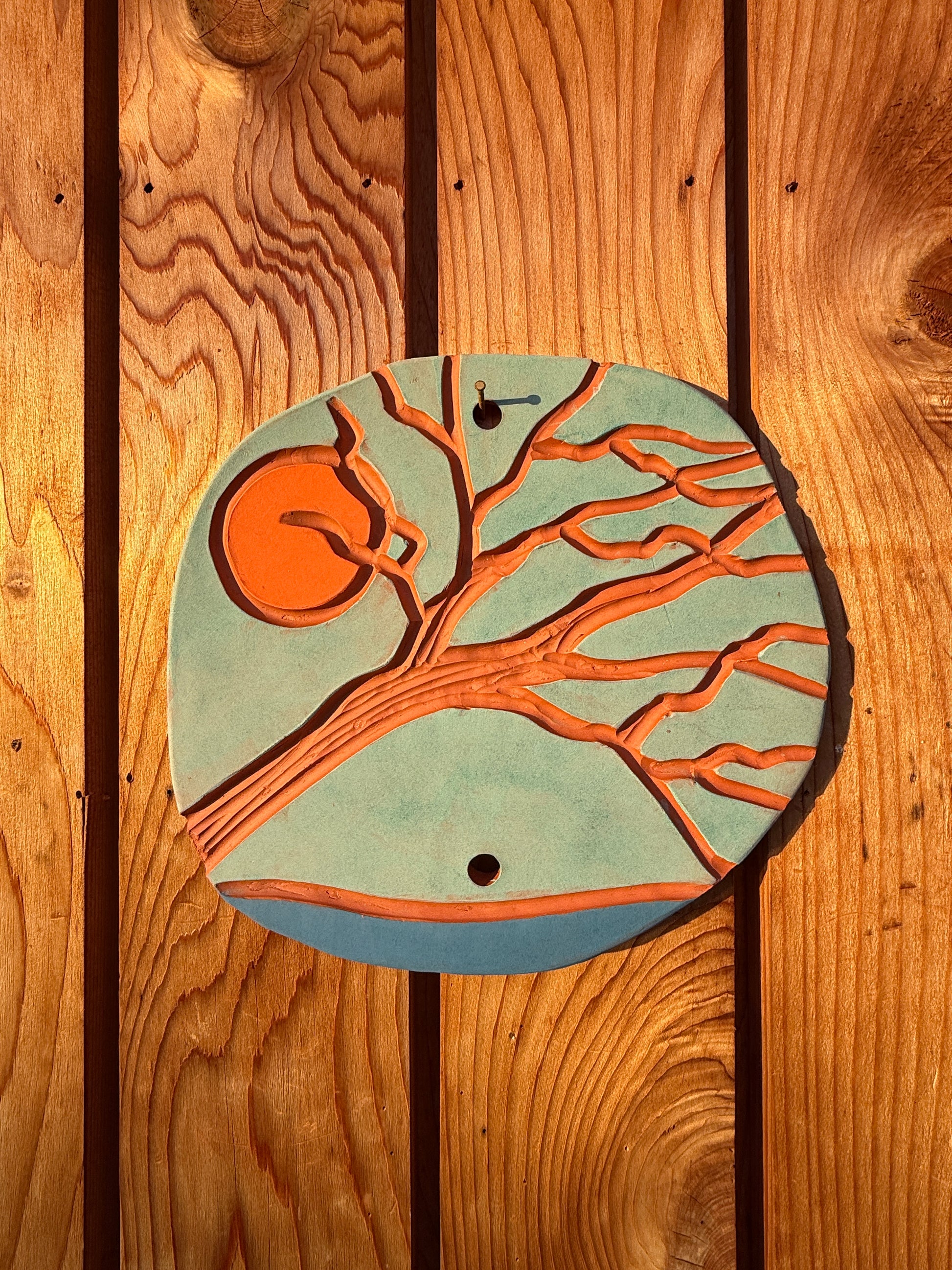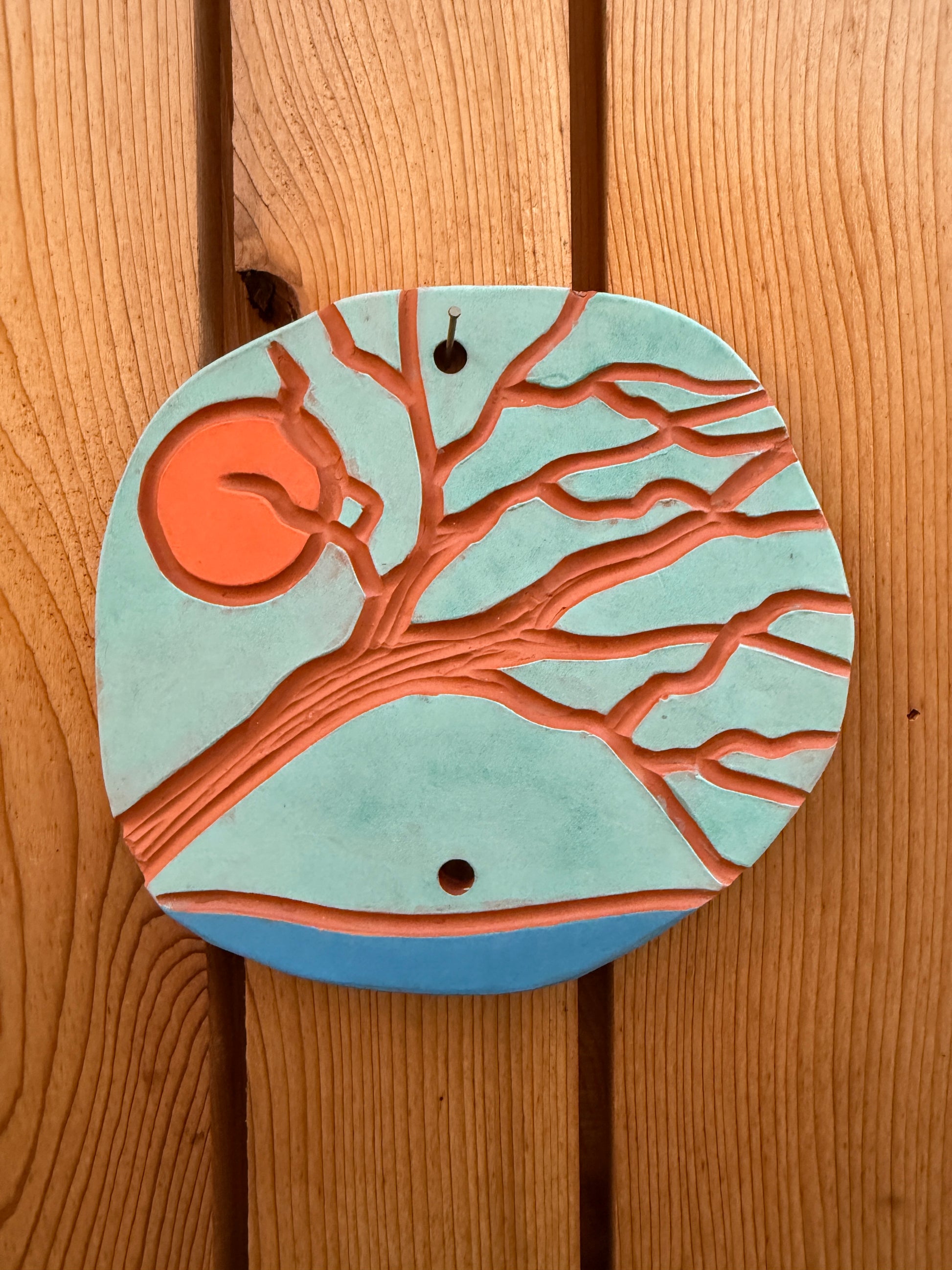 House Badges are hand formed and carved using Terracotta clay, then painted with underglazes before being fired. Each badge is one-of-a-kind and stamped and signed on the back with badge number.