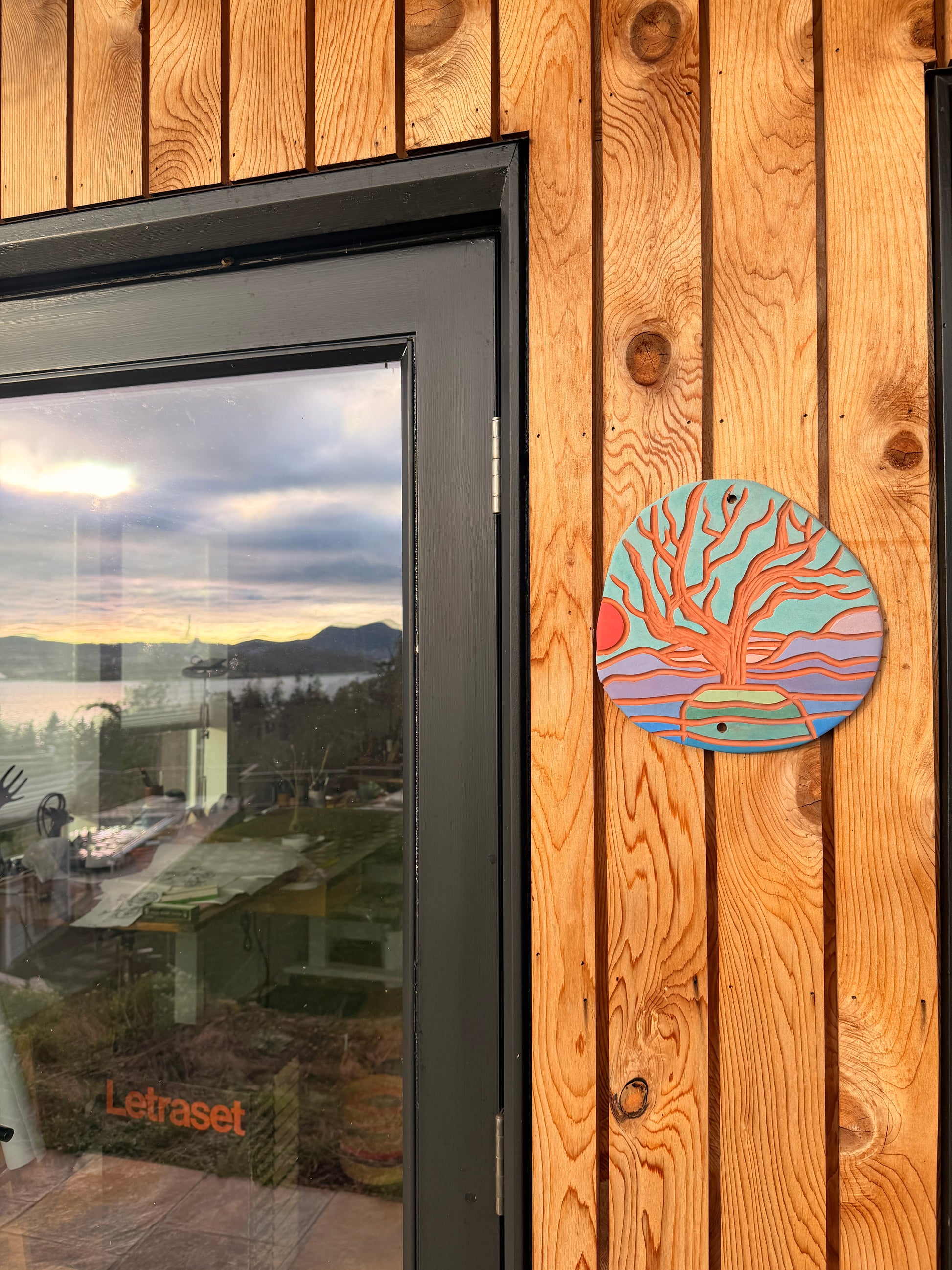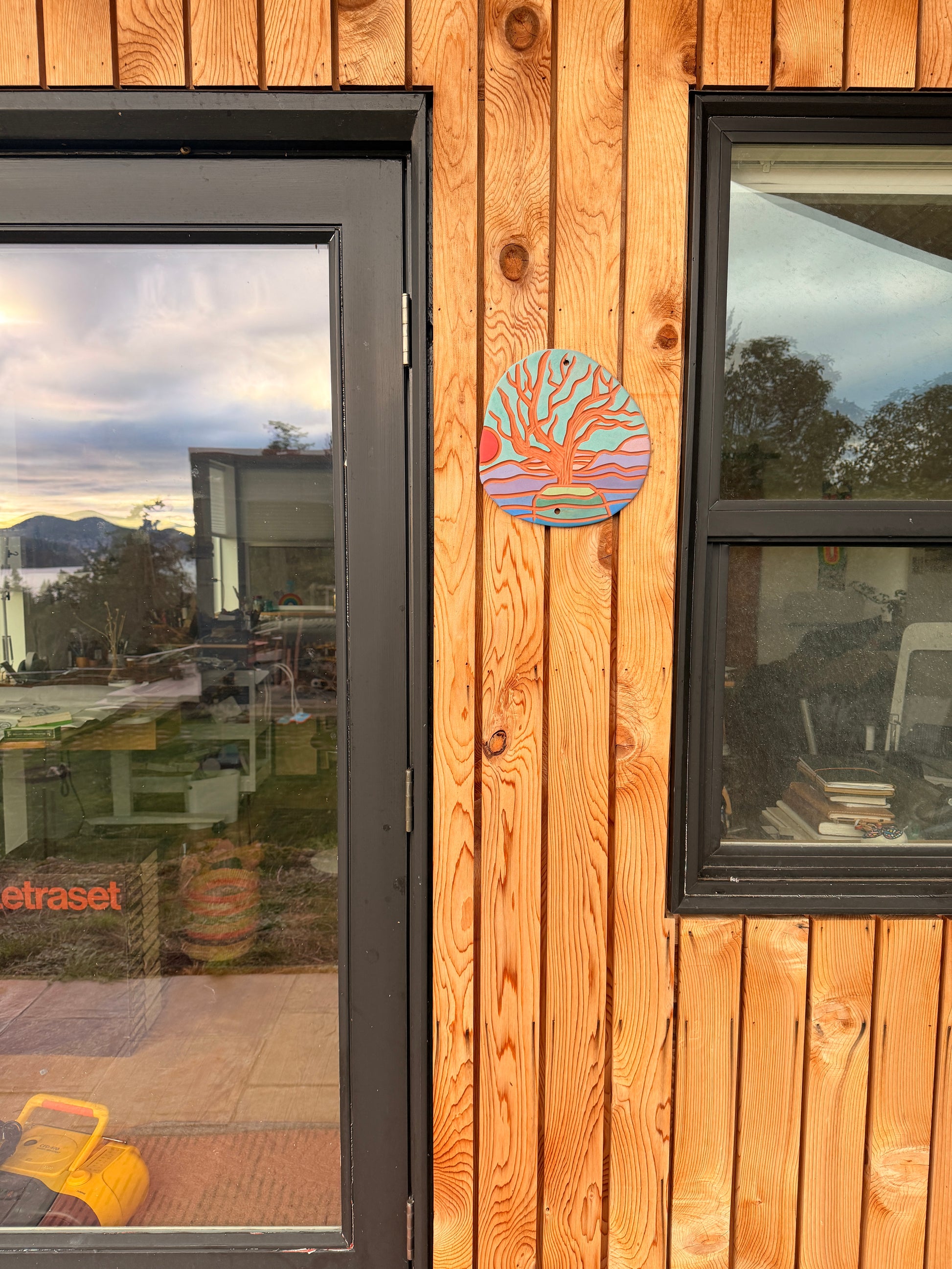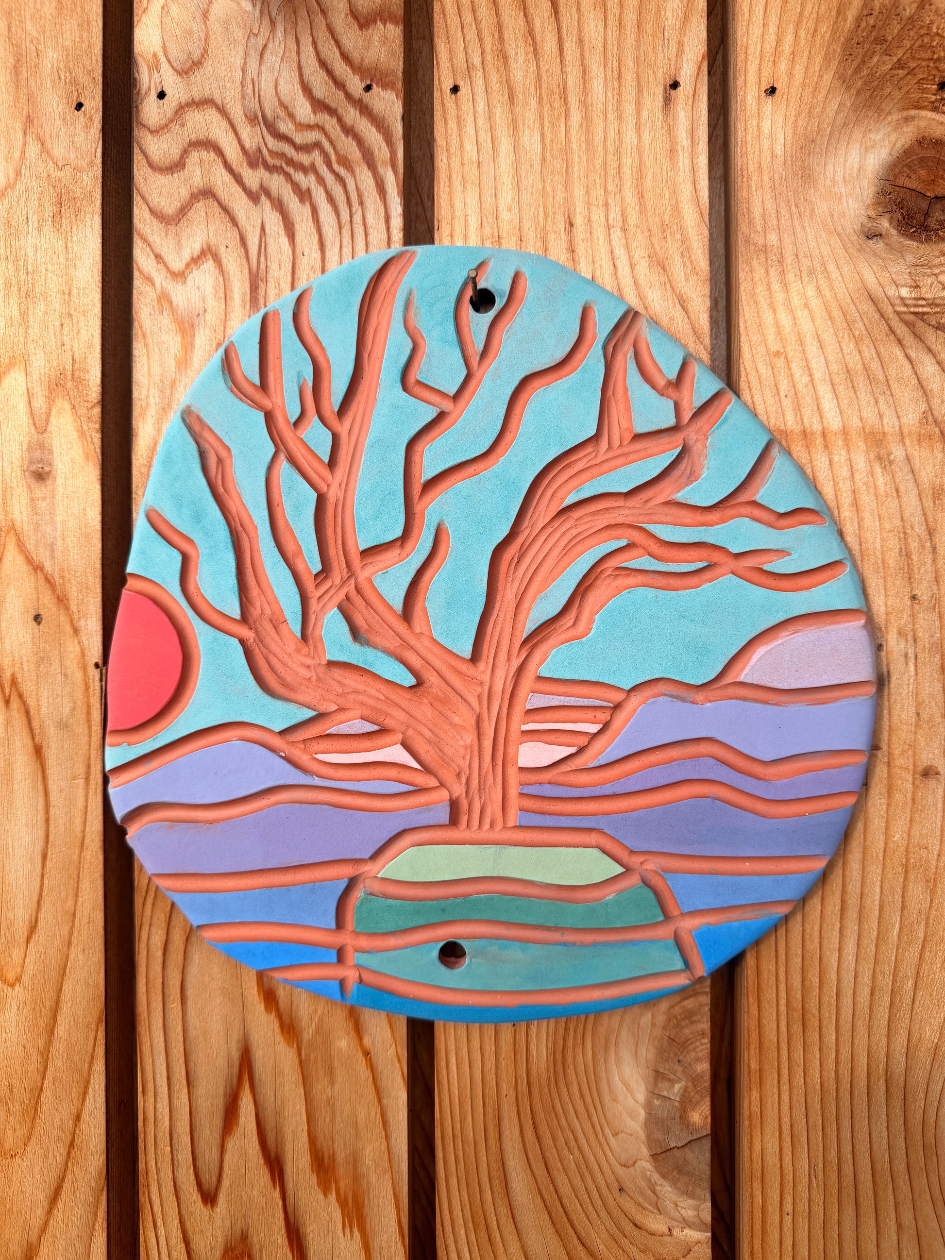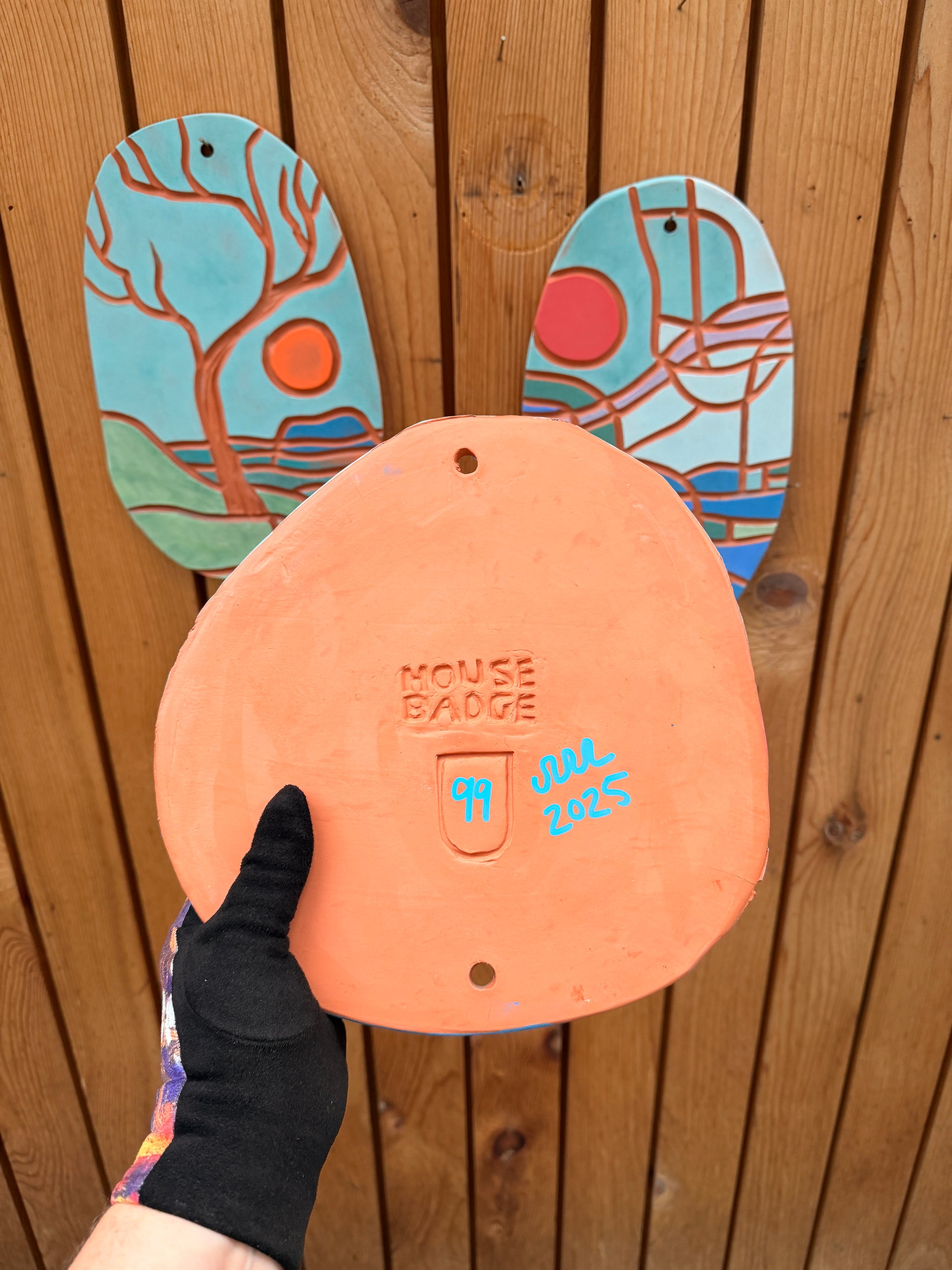 House Badges are hand formed and carved using Terracotta clay, then painted with underglazes before being fired. Each badge is one-of-a-kind and stamped and signed on the back with badge number.